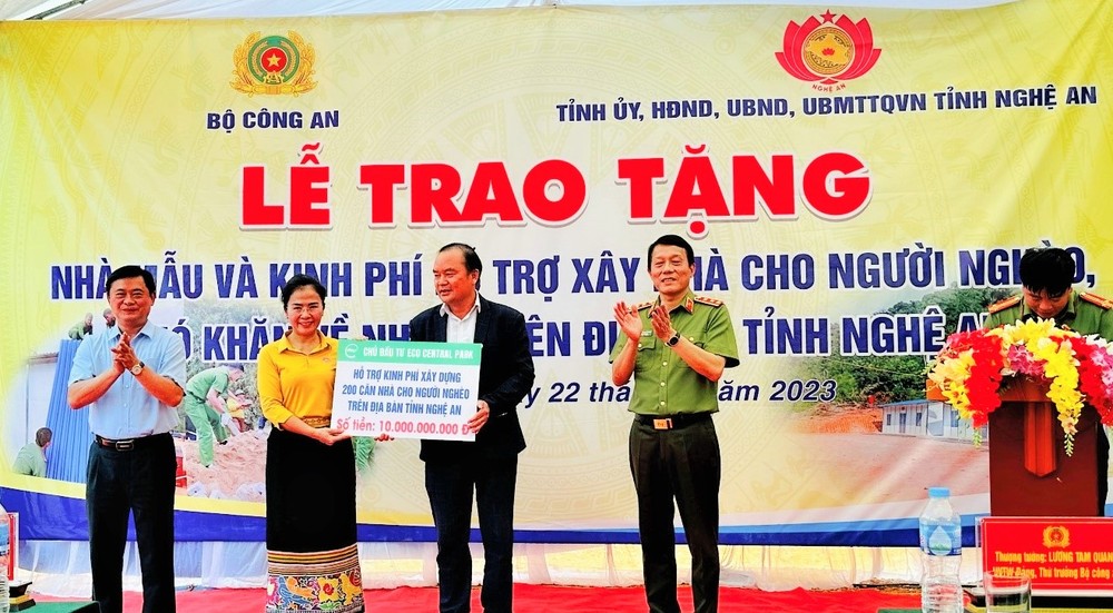 Hưởng ứng Chương trình vận động, hỗ trợ xây dựng nhà cho người nghèo, người khó khăn về nhà ở trên địa bàn tỉnh Nghệ An giai đoạn 2023 – 2025, Chủ đầu tư dự án Eco Central Park đã chung tay đóng góp, hỗ trợ 10 tỷ đồng xây dựng 200 căn nhà tại 27 xã biên giới tỉnh Nghệ An.