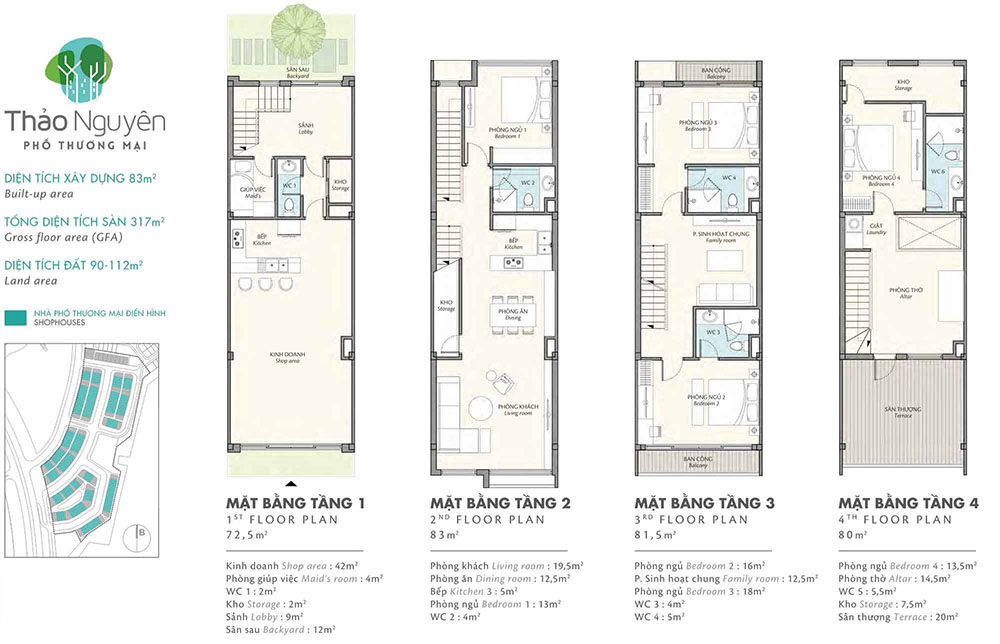 Mặt bằng thiết kế Shophouse Ecopark Vinh điển hình
